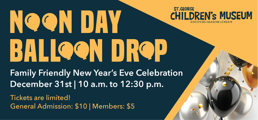 Celebrate the excitement of the new year! Families are invited to ring in 2026 at the St. George Children’s Museum with crafts, games, and our signature balloon drop at noon.